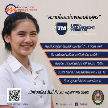 ให้ทุนตลอดหลักสูตร! สวนสุนันทา จับมือ CP ALL ผุดหลักสูตรการจัดการการค้า มีผลการเรียน 2.00 ขึ้นไปสมัครได้เลย tui sakrapee April 29, 2019 วิทยาลัยนวัตกรรมและการจัดการ มหาวิทยาลัยราชภัฏสวนสุนันทา เปิดรับสมัครนักศึกษาใหม่ภาคปกติ ระดับปริญญาตรี ภาคปกติ ในหลักสูตรบริหารธุรกิจบัณฑิต สาขาวิชาการจัดการการค้า หลักสูตรนี้เป็นโครงการความร่วมมือทางวิชาการระหว่าง มหาวิทยาลัยราชภัฏสวนสุนันทา กับ บริษัท ซีพี ออลล์ จำกัด (มหาชน) เป็นการขยายโอกาสทางการศึกษา มีทุนอุดหนุนให้นักศึกษาในแต่ละภาคเรียนสำหรับการลงทะเบียนเรียนคือ ทุนการศึกษา จาก ซีพี ออลล์ 70 % ทุนการศึกษา จาก มหาวิทยาลัยราชภัฏสวนสุนันทา 15 % นักศึกษาจึงชำระค่าลงทะเบียนด้วยตนเอง เพียง 4,950 บาท/ต่อภาคเรียนเท่านั้น ในการรับเข้าศึกษาไม่ต้องสอบข้อเขียน ไม่ต้องยื่นคะแนน ไม่ต้องยื่นแฟ้มสะสมผลงาน ขอเพียงมีผลการเรียน 2.00 ขึ้นไป หลักสูตรนี้เรียนควบคู่ไปกับการฝึกปฏิบัติทีร้านเซเว่นอีเลฟเว่นทั่วประเทศ มีรายได้ระหว่างเรียนและมีสวัสดิการบริษัท เมื่อสำเร็จการศึกษา จะได้รับสิทธิ์พิจารณาบรรจุเข้าทำงานกับ… Continue Reading