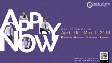 มหิดลอินเตอร์ เปิดรับนักศึกษาใหม่ระดับปริญญาตรี (หลักสูตรนานาชาติ) tui sakrapee April 22, 2019 วิทยาลัยนานาชาติ มหาวิทยาลัยมหิดล (MUIC) เปิดรับสมัครนักศึกษาใหม่ระดับปริญญาตรี หลักสูตรนานาชาติ รอบที่ 1 ประจำปีการศึกษา 2562-2563 จำนวน 6หลักสูตร 16 สาขาวิชา ระหว่างวันที่ 18 เมษายน – 1 พฤษภาคม 2562 สอบถามรายละเอียดเพิ่มเติมได้ที่ : www.muic.mahidol.ac.th หรือติดต่อหน่วยรับสมัครฯ โทร.0-2700-5000 ต่อ 4344, 4347 อีเมล์ : icdad@mahidol.ac.th 1.หลักสูตรนิเทศศาสตร์บัณฑิต (BACHELOR OF COMMUNICATION ARTS: B.COM.ARTS) – สาขาวิชาสื่อและการสื่อสาร (Media and Communication) 2.หลักสูตรศิลปกรรมศาสตร์บัณฑิต (BACHELOR OF FINE ARTS : B.F.A.) – สาขาวิชาออกแบบนิเทศศิลป์ (Communication Design) 3.หลักสูตรศิลปศาสตรบัณฑิต (BACHELOR OF ARTS : B.A.) – สาขาวิชาความสัมพันธ์ระหว่างประเทศและกิจการทั่วโลก (International Relations and Global Affairs) – สาขาวิชาวัฒนธรรมนานาชาติศึกษาและภาษา (Intercultural… Continue Reading