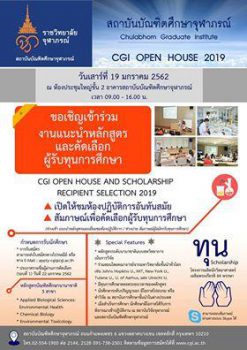 CGI Open House 2019 EZ Webmaster January 16, 2019 CGI Open House 2019 ขอเชิญร่วมงานแนะนำหลักสูตรสถาบันบัณฑิตศึกษาจุฬาภรณ์ CGI Open House 2019 ใน วันเสาร์ที่ 19 มกราคม 2562 เพื่อเยี่ยมชมสถาบัน และห้องปฏิบัติการวิจัย พร้อมรับโอกาสในการคัดเลือกให้ได้รับทุนเรียนฟรี Continue Reading