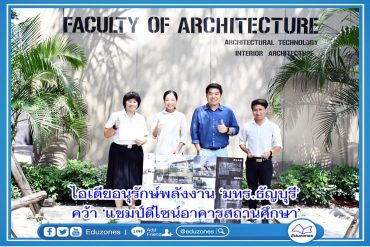 ไอเดียอนุรักษ์พลังงานมทร.ธัญบุรีคว้าแชมป์ดีไซน์อาคารสถานศึกษา admin September 17, 2018 ไอเดียอนุรักษ์พลังงาน ‘มทร.ธัญบุรี’ คว้า ‘แชมป์ดีไซน์อาคารสถานศึกษา’ ทีมนักศึกษาสถาปัตย์ มทร.ธัญบุรี ซิวแชมป์ BEC Award 2018 สำเร็จ ออกแบบอาคารอนุรักษ์พลังงาน ด้วยแนวคิดพึ่งพาธรรมชาติและผสมผสานกับวัสดุอุปกรณ์ทันสมัย นักศึกษาชั้นปีที่ 5 คณะสถาปัตยกรรมศาสตร์ มหาวิทยาลัยเทคโนโลยีราชมงคล (มทร.) ธัญบุรี นายพงศธร กลิ่นเทียน ‘จิ๋ว’ และ นางสาวณัฐสุกานต์ คำสิริจรัส‘ดรีม’ ชนะเลิศผลงานกิจกรรมประกวดออกแบบอาคารเพื่อการอนุรักษ์พลังงาน ประเภทนักศึกษาออกแบบสถานศึกษา ในชื่อผลงาน ‘โรงเรียนสาธิตนวัตกรรม มทร.ธัญบุรี’ School of Energy Project โดยมี ผศ.ดร.วรากร สงวนทรัพย์ และอาจารย์โสพิศ ชัยชนะ เป็นที่ปรึกษา ซึ่งจัดขึ้นโดยกรมพัฒนาพลังงานทดแทนและอนุรักษ์พลังงาน กระทรวงพลังงาน ภายใต้กิจกรรม ‘แบบอาคาร BEC ที่มีประสิทธิภาพพลังงานระดับดีเด่น’ พงศธร เล่าถึงแนวคิดในการออกแบบ มี 2 ส่วนด้วยกัน ส่วนแรกคือ Passive Design ที่เน้นการพึ่งพาธรรมชาติด้วยแนวคิดการแบ่งสมองซีกซ้าย-การเรียน และสมองซีกขวา-การเล่น โดยออกแบบพื้นที่ของอาคารที่เน้นช่องเปิดโล่งให้ลมสามารถเข้าออกได้สะดวก ตามทิศทางของลม และนำแสงธรรมชาติเข้ามาใช้ได้อย่างเต็มประสิทธิภาพ… Continue Reading
