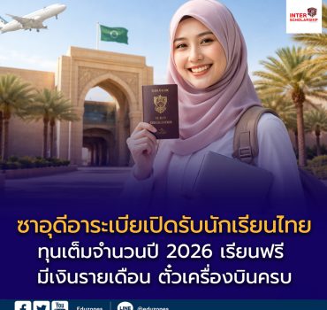 ซาอุดีอาระเบียเปิดรับนักเรียนไทย! ทุนเต็มจำนวนปี 2026 เรียนฟรี มีเงินรายเดือน ตั๋วเครื่องบินครบ EZ WebmasterApril 9, 2026 🌍 ซาอุดีอาระเบียเปิดรับนักเรียนไทย! ทุนเต็มจำนวนปี 2026 เรียนฟรี มีเงินรายเดือน ตั๋วเครื่องบินครบ โดย กองบรรณาธิการ Eduzones | อัปเดต 2569 โอกาสเรียนต่อต่างประเทศแบบ “ทุนเต็มจำนวน” กลับมาอีกครั้ง เมื่อกระทรวงศึกษาธิการแห่งราชอาณาจักรซาอุดีอาระเบีย เปิดรับสมัครนักศึกษาต่างชาติผ่านแพลตฟอร์มกลาง…