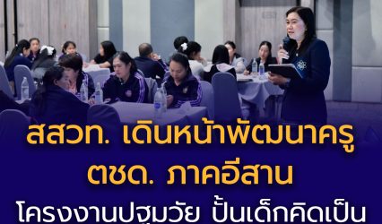 Blogครู-อาจารย์นักศึกษา สสวท. เดินหน้าพัฒนาครู ตชด. ภาคอีสาน ผ่าน “โครงงานปฐมวัย” ปั้นเด็กคิดเป็น เรียนรู้จากการลงมือทำ สถาบันส่งเสริมการสอนวิทยาศาสตร์และเทคโนโลยี (สสวท.) จัดอบรมเชิงปฏิบัติการหลักสูตร “การจัดการเรียนรู้แบบโครงงานสำหรับเด็กปฐมวัย” สำหรับครูและบุคลากรระดับปฐมวัยสังกัดโรงเรียนตำรวจตระเวนชายแดน ครั้งที่ 2 ภาคตะวันออกเฉียงเหนือ ระหว่างวันที่ 7–9 เมษายน 2569 ณ โรงแรมเลอ แคสเซีย จ.ขอนแก่น โดยมี ดร.พจนา ดอกตาลยงค์…