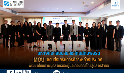 Blogครู-อาจารย์ มหาวิทยาลัยนานาชาติแสตมฟอร์ด ลงนาม MOU ร่วมกับกรมส่งเสริมการค้าระหว่างประเทศ พัฒนาศักยภาพบุคลากรและผู้ประกอบการไทยสู่ตลาดสากล เมื่อวันที่ 28 เมษายน 2569 ที่ผ่านมา ณ ห้องพาณิชย์สัมพันธ์ ชั้น 11 อาคารริมน้ำ กรมส่งเสริมการค้าระหว่างประเทศ มหาวิทยาลัยนานาชาติแสตมฟอร์ด เดินหน้าพัฒนาศักยภาพบุคลากรและผู้ประกอบการไทยสู่เวทีนานาชาติ ด้วยการลงนามบันทึกความเข้าใจ (Memorandum of Understanding: MOU)…