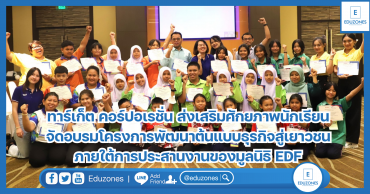 ทาร์เก็ต คอร์ปอเรชั่น ส่งเสริมศักยภาพนักเรียนจัดอบรมโครงการพัฒนาต้นแบบธุรกิจสู่เยาวชน ภายใต้การประสานงานของมูลนิธิ EDF EZ Webmaster March 14, 2024 ด้วยยุคสมัยที่เปลี่ยนไปที่โรงเรียนต่างบูรณาการให้ก้าวทันโลกและเทคโนโลยีที่มีการพัฒนาอย่างต่อเนื่อง ดังนั้นการศึกษาจึงมิได้จำกัดอยู่แค่เพียงบทเรียนในชั้นเรียนภายในโรงเรียนเท่านั้น ล่าสุดบริษัท ทาร์เก็ต คอร์ปอเรชั่น จำกัด ซึ่งให้ความสำคัญต่อการพัฒนาศักยภาพการเรียนรู้ของเยาวชนได้ให้การสนับสนุนการจัดอบรมโครงการพัฒนาต้นแบบธุรกิจสู่เยาวชน (Youth Business Development Project) ภายใต้การประสานงานของมูลนิธิ EDF (มูลนิธิกองทุนการศึกษาเพื่อการพัฒนา) แก่นักเรียนระดับแกนนำจาก 4 โรงเรียน สังกัดสำนักงานเขตพื้นที่การศึกษาประถมศึกษานนทบุรี เขต 2 ได้แก่ โรงเรียนโรงเรียนสามัคคีวิทยา (เชื้อผู้ดีอุปถัมภ์) โรงเรียนชุมชนวัดไทรน้อย โรงเรียนสุเหร่าเขียว และโรงเรียนอนุบาลบางใหญ่ ณ โรงแรมไมด้า ดอนเมือง แอร์พอร์ต กรุงเทพฯ โดยมีผู้แทนครูแต่ละโรงเรียนเข้าร่วมด้วย นางพลอยภัสสร์ พูลสวัสดิ์ ผู้อำนวยการฝ่ายบริหาร มูลนิธิ EDF (มูลนิธิกองทุนการศึกษาเพื่อการพัฒนา) กล่าวว่า “มูลนิธิ EDF ยินดีเป็นอย่างยิ่งที่ได้ทำงานร่วมกับบริษัท ทาร์เก็ต คอร์ปอเรชั่น จำกัด ในการส่งเสริมศักยภาพเยาวชนไทยด้านต่าง ๆ ในโรงเรียนติดต่อกันมาเป็นปีที่ 7 ซึ่งในปีการศึกษา 2567 มูลนิธิ EDF ได้ดำเนินโครงการผู้ประกอบการรุ่นเยาว์ (Young Entrepreneur) สำหรับโรงเรียนในจังหวัดฉะเชิงเทรา และล่าสุดโครงการพัฒนาต้นแบบธุรกิจสู่เยาวชน (Youth… Continue Reading