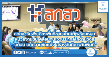 สกสว. รับฟังเสียงพื้นที่ชายแดนใต้ พร้อมหนุนหน่วยงานขับเคลื่อนทุน ววน.นำกลไกด้านวิจัย “แก้จน แก้ความขัดแย้ง สร้างสันติภาพในพื้นที่” EZ Webmaster March 13, 2024 สำนักงานคณะกรรมการส่งเสริมวิทยาศาสตร์ วิจัยและนวัตกรรม หรือ สกสว. ผนึกกำลังภาคีเครือข่าย ร่วมรับฟังความต้องการจากพื้นที่ชายแดนภาคใต้ และหารือแนวทางการบูรณานำผลงานวิจัยเด่นของมหาวิทยาลัยนราธิวาสราชนครินทร์ มหาวิทยาลัยสงขลานครินทร์ วิทยาเขตปัตตานี และมหาวิทยาลัยราชภัฏยะลา ไปใช้ประโยชน์อย่างมีประสิทธิภาพ เพื่อร่วมกันพิจารณาศึกษาและเสนอแนวทางการส่งเสริมกระบวนสร้างสันติภาพฯ สู่การขับเคลื่อน พัฒนา และแก้ไขปัญหาพื้นที่จังหวัดชายแดนภาคใต้ใน 5 มิติ ภายใต้แนวคิดการพัฒนาที่ยั่งยืน ได้แก่ มิติสังคม มิติเศรษฐกิจ มิติสิ่งแวดล้อม มิติสันติภาพและสถาบัน และมิติหุ้นส่วนการพัฒนา เพื่อให้ปัญหาในพื้นที่ชายแดนใต้ที่เกิดขึ้นร่วม 20 ปี ถูกแก้ไขได้ดีขึ้น อีกทั้งยังช่วยให้การจัดสรรงบประมาณที่ใช้สนับสนุนงานวิจัยตรงกับความต้องการและบริบทของพื้นที่ โดยมีแพทย์หญิงเพชรดาว โต๊ะมีนา ที่ปรึกษารัฐมนตรีว่าการกระทรวงการอุดมศึกษา วิทยาศาสตร์ วิจัยและนวัตกรรม (อว.) เป็นประธานการประชุม พร้อมด้วยนายวีรพัฒน์ บุณฑริก รองผู้ว่าราชการจังหวัดนราธิวาส ผู้บริหารจาก สกสว. และคณะผู้แทนจากหลากหลายหน่วยงาน ร่วมรับฟังความต้องการและแลกเปลี่ยนความคิดเห็น แพทย์หญิงเพชรดาว โต๊ะมีนา… Continue Reading