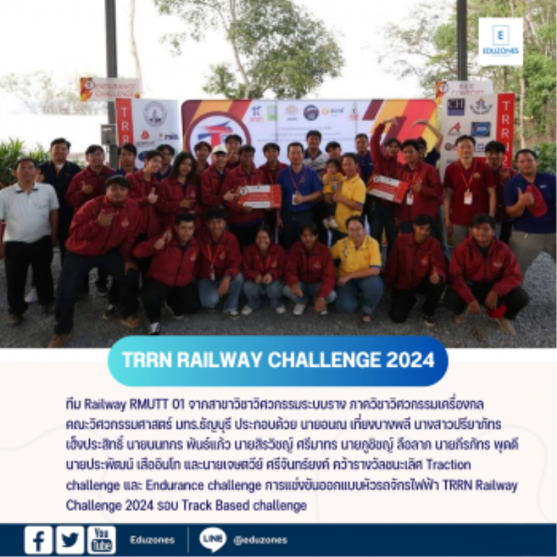 นักศึกษา มทร.ธัญบุรี คว้า 2 รางวัล TRRN RAILWAY CHALLENGE 2024 แข่งขันออกแบบหัวรถจักรไฟฟ้า tui sakrapee March 11, 2024 มทร.ธัญบุรี คว้า 2 รางวัล TRRN RAILWAY CHALLENGE 2024 ยินดีกับ ทีม Railway RMUTT 01 จากสาขาวิชาวิศวกรรมระบบราง ภาควิชาวิศวกรรมเครื่องกล คณะวิศวกรรมศาสตร์ มหาวิทยาลัยเทคโนโลยีราชมงคลธัญบุรี (มทร.ธัญบุรี) ประกอบด้วย นายอนณ เที่ยงบางพลี นางสาวปรียาภัทร เฮ็งประสิทธิ์ นายนนทกร พันธ์แก้ว นายสิรวิชญ์ ศรีมาทร นายภูชิชญ์ ลือลาภ นายภีรภัทร พุดดี นายประพัฒน์ เสืออินโท และนายเจษตวีย์ ศรีจันทร์ยงค์ คว้ารางวัลชนะเลิศ Traction challenge และ Endurance challenge การแข่งขันออกแบบหัวรถจักรไฟฟ้า TRRN Railway Challenge 2024 รอบ Track Based challenge ในการแข่งขัน TRRN RAILWAY CHALLENGE 2024 ณ… Continue Reading