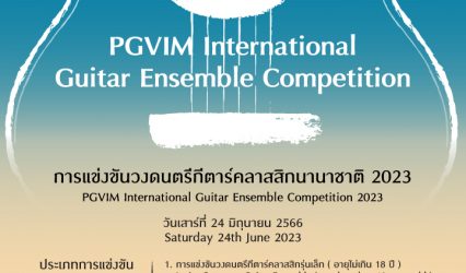 Blogกิจกรรม สถาบันดนตรีกัลยาณิวัฒนา เชิญชวนร่วมงาน “การแข่งขันวงดนตรีกีตาร์คลาสสิกนานาชาติ 2023” tui sakrapee March 9, 2023 สถาบันดนตรีกัลยาณิวัฒนา และ โครงการแข่งขันกีตาร์ประเภทรวมวง / PGVIM Activities on Guitar Ensemble Competition ขอเชิญเข้าร่วมงาน “การแข่งขันวงดนตรีกีตาร์คลาสสิกนานาชาติ 2023” ในวันเสาร์ที่ 24 มิถุนายน…