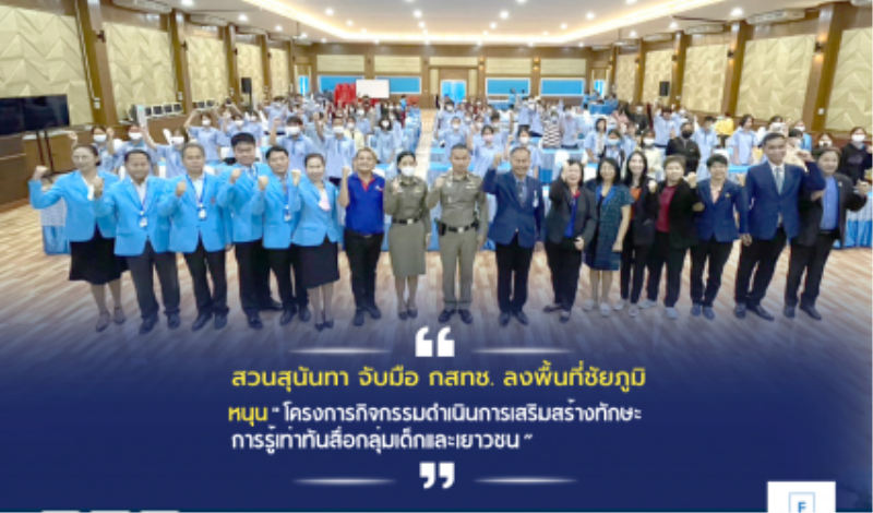 Blogกิจกรรม สวนสุนันทา จับมือ กสทช. ลงพื้นที่ชัยภูมิหนุน “โครงการกิจกรรมดำเนินการเสริมสร้างทักษะการรู้เท่าทันสื่อกลุ่มเด็กและเยาวชน” tui sakrapee March 8, 2023 สำนักงาน กสทช.และมหาวิทยาลัยราชภัฏสวนสุนันทาลงพื้นที่จังหวัดชัยภูมิเพื่อสนับสนุนมหาวิทยาลัยราชภัฏชัยภูมิร่วมกับโรงเรียนแก้งคร้อวิทยา และ โรงเรียนนาหนองทุ่มวิทยา จัดโครงการกิจกรรมดำเนินการเสริมสร้างทักษะการรู้เท่าทันสื่อกลุ่มเด็กและเยาวชน ในวันที่ 7-8 มีนาคม 2566 โดยมีผู้บริหารสถานศึกษาทั้ง 2 แห่งให้การต้อนรับ และมีวิทยากรให้ความรู้เรื่องการใช้สื่อ การรู้เท่าทันสื่อ และการสร้างสื่ออย่างสร้างสรรค์แก่นักเรียนใน 2…