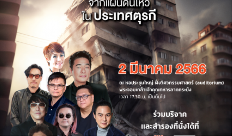 กิจกรรม สจล. ชวนร่วมชมคอนเสิร์ตการกุศล เพื่อระดมทุนช่วยเหลือผู้ประสบภัยแผ่นดินไหวที่ตุรกี EZ Webmaster February 24, 2023 สถาบันเทคโนโลยีพระจอมเกล้าเจ้าคุณทหารลาดกระบัง (สจล.) โดยวิทยาลัยวิศวกรรมสังคีต และเครือข่ายผู้บริหารด้านหลักนิติธรรมและการพัฒนา (RoLD) สถาบันเพื่อการยุติธรรมแห่งประเทศไทย (TIJ) จัดคอนเสิร์ตการกุศล เพื่อระดมทุนช่วยเหลือผู้ประสบภัยแผ่นดินไหวที่สาธารณรัฐตุรกี โดยได้รับเกียรติจากศิลปินดังยุค 90 ระดับตำนาน ได้แก่ วงนูโว, ศักดา อินคา,…