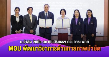 ม.รังสิต จับมือ สถาบันสิรินธรฯ กรมการแพทย์ MOU พัฒนาวิชาการด้านกายภาพบำบัด EZ Webmaster February 28, 2024 คณะกายภาพบำบัดและเวชศาสตร์การกีฬา มหาวิทยาลัยรังสิต ร่วมกับ สถาบันสิรินธรเพื่อการฟื้นฟูสมรรถภาพทางการแพทย์แห่งชาติ กรมการแพทย์ กระทรวงสาธารณสุข ลงนามความร่วมมือพัฒนาวิชาการด้านกายภาพบำบัด นายแพทย์ศุภชัย คุณารัตนพฤกษ์ รองอธิการบดีฝ่ายการแพทย์และวิทยาศาสตร์สุขภาพ มหาวิทยาลัยรังสิต กล่าวว่า การลงนามความร่วมมือครั้งนี้เป็นอีกความร่วมมือหนึ่งที่มหาวิทยาลัยรังสิต และกรมการแพทย์ กระทรวงสาธารณสุข ได้ประสานงานร่วมกัน ที่ผ่านมาทั้งสองสถาบันได้มีความร่วมมือในด้านการศึกษาต่างๆ อย่างต่อเนื่อง ไม่ว่าจะเป็นความร่วมมือทางด้านการผลิตแพทย์ การผลิตนักศึกษาระดับปริญญาโทของสถาบันโรคผิวหนัง และอื่นๆ รวมถึงความร่วมมือกับคณะกายภาพบำบัดและเวชศาสตร์การกีฬา ในการผลิตนักกายภาพบำบัด หลักสูตรระยะสั้นกายภาพบำบัดเพื่อการฟื้นฟูสมรรถภาพระยะกลาง ซึ่งคาดหวังว่าภายใต้การนำของอธิบดีกรมการแพทย์ กระทรวงสาธารณสุข และผู้อำนวยการสถาบันสิรินธรฯ เราจะสามารถพัฒนาความร่วมมือกันให้มากขึ้นและหลากหลายขึ้น โดยกรมการแพทย์มีจุดแข็งมากมายในด้านสิ่งอำนวยความสะดวก ด้านบุคลากร เครื่องมือ ทางมหาวิทยาลัยรังสิตก็มีจุดแข็งด้านวิชาการ ซึ่งมีโอกาสที่จะสนับสนุนในทางวิจัย ดังนั้น การจัดอบรมหลักสูตรระยะสั้นร่วมกันครั้งนี้จะเป็นประโยชน์และพัฒนาวิชาชีพกายภาพบำบัดได้อย่างต่อเนื่อง แพทย์หญิงอัมพร เบญจพลพิทักษ์ อธิบดีกรมการแพทย์ กระทรวงสาธารณสุข กล่าวว่า กระทรวงสาธารณสุขเป็นหน่วยงานหลักที่ขับเคลื่อนการดำเนินงานด้านสุขภาพ มีความมุ่งหวังและมีบทบาทชัดเจนในการที่จะทำให้กลไกของการบริการสุขภาพนั้นเป็นไปได้อย่างดีที่สุด… Continue Reading