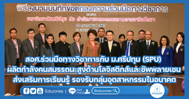 สอศ.ร่วมมือทางวิชาการกับ ม.ศรีปทุม (SPU) ผลิตกำลังคนสมรรถนะสูงด้านโลจิสติกส์และซัพพลายเชนส่งเสริมการเรียนรู้ที่ทันสมัย รองรับกลุ่มอุตสาหกรรมในอนาคต EZ Webmaster February 23, 2024 นายยศพล เวณุโกเศศ เลขาธิการคณะกรรมการการอาชีวศึกษา มอบหมายให้นายสง่า แต่เชื้อสาย ผู้ช่วยเลขาธิการคณะกรรมการการอาชีวศึกษา เข้าร่วมในพิธีลงนามบันทึกข้อตกลงว่าด้วยความร่วมมือทางวิชาการ ระหว่าง สำนักงานคณะกรรมการการอาชีวศึกษา กับ มหาวิทยาลัยศรีปทุม โดยมีดร.รัชนีพร พุคยาภรณ์ พุกกะมาน อธิการบดี มหาวิทยาลัยศรีปทุม ผู้ช่วยศาสตราจารย์ ดร.ธริธี มณีศรี คณบดีวิทยาลัยโลจิสติกส์และซัพพลายเชนมหาวิทยาลัยศรีปทุม ดร.รัชนีพร พุคยาภรณ์ พุกกะมาน อธิการบดี มหาวิทยาลัยศรีปทุม ผู้บริหาร สอศ. และผู้บริหารมหาวิทยาลัยศรีปทุม เข้าร่วม ณ มหาวิทยาลัยศรีปทุม นายสง่า แต่เชื้อสาย ผู้ช่วยเลขาธิการคณะกรรมการการอาชีวศึกษา กล่าวว่า สำนักงานคณะกรรมการการอาชีวศึกษา (สอศ.) มีภารกิจหลักทางการจัดการศึกษา เพื่อการผลิตและพัฒนากำลังคนสายอาชีพ ให้เป็นกำลังคนที่มีคุณภาพและสมรรถนะสูง ตอบโจทย์การพัฒนาประเทศ เน้นการเรียนรู้จากการปฏิบัติจริง… Continue Reading