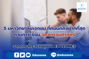 EZ Webmaster February 22, 2024 5 มหาวิทยาลัย ที่คนนึกถึงมากที่สุด ด้านการเรียนสถาปัตยกรรมศาสตร์ จากการสำรวจของ EDUZONES EZ Webmaster February 22, 2024 ถ้าพูดถึงการเรียน คณะสถาปัตยกรรมศาสตร์ ทุกคนจะนึกถึงมหาวิทยาลัยไหน ทาง EDUZONES ได้สำรวจความคิดเห็นของคนส่วนใหญ่ในชุมชน ในหัวข้อ ถ้านึกถึงการเรียนสถาปัตย์ ทุกคนนึกถึงมหาวิทยาลัยไหน เริ่มเก็บข้อมูลตั้งแต่วันที่ 16 กุมภาพันธ์ 2567 จะมีที่ไหนบ้าง มาดูกันเลย อันดับที่ 1 จุฬาลงกรณ์มหาวิทยาลัย อันดับที่ 2 มหาวิทยาลัยเทคโนโลยีราชมงคลธัญบุรี อันดับที่ 3 สถาบันเทคโนโลยีพระจอมเกล้าคุณทหารลาดกระบัง อันดับที่ 4 มหาวิทยาลัยศิลปากร อันดับที่ 5 มหาวิทยาลัยเกษมบัณฑิต มหาวิทยาลัยเอกชนที่คนนึกถึงมากที่สุดเมื่อพูดถึงการ เรียนสถาปัตย์… Continue Reading
