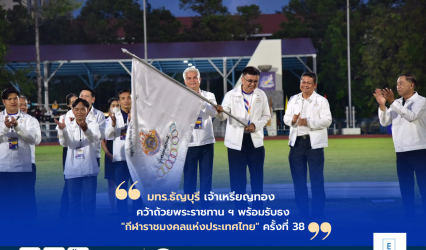 เจ้าภาพ คว้าถ้วยพระราชทานฯ มทร.อีสานรับไม้ต่อ”กีฬาราชมงคลแห่งประเทศไทย” ครั้งที่ 39 tui sakrapee February 17, 2024 จบลงเป็นที่เรียบร้อยการแข่งขันกีฬามหาวิทยาลัยเทคโนโลยีราชมงคล แห่งประเทศไทยครั้งที่ 38 ธัญบุรีเกมส์ เหรียญสุดท้ายการปิดสนามการแข่งขันฟุตบอล ระหว่าง มทร.ธัญบุรี และ มทร.รัตนโกสินทร์ ด้วยการดวลจุดโทษ ซึ่งผลการแข่งขันปรากฏว่า มทร.รัตนโกสินทร์ ชนะ มทร.ธัญบุรี 5:4 ประตู สรุปเหรียญการแข่งขันเป็นไปตามคาด มทร.ธัญบุรี เจ้าเหรียญทอง 68 เหรียญทอง 39 เหรียญเงิน 18 เหรียญทองแดง อันดับ 2 มทร.กรุงเทพ 17 เหรียญทอง 12 เหรียญเงิน 9 เหรียญทองแดง อันดับ 3 มทร.รัตนโกสินทร์ 16 เหรียญทอง 7 เหรียญเงิน 11… Continue Reading