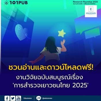 EZ Webmaster December 25, 2025 ชวนอ่านและดาวน์โหลดฟรี! งานวิจัยฉบับสมบูรณ์เรื่อง ‘การสำรวจเยาวชนไทย 2025’ EZ Webmaster December 25, 2025 ชวนอ่านและดาวน์โหลดฟรี! งานวิจัยฉบับสมบูรณ์เรื่อง ‘การสำรวจเยาวชนไทย 2025’ 📘 ชวนอ่าน–ดาวน์โหลดฟรี! งานวิจัย “การสำรวจเยาวชนไทย 2025”งานวิจัยฉบับสมบูรณ์ที่สะท้อนภาพเยาวชนไทยในมิติทางจิตวิทยา สังคม และการศึกษาจัดทำโดย ทิพย์นภา หวนสุริยา, ศุภณัฐ ศรีอุทัยสุข, ธนกฤต สำราญกมล และพิมพ์มาดา เจริญศิลป์ภายใต้โครงการของ คิด for คิดส์ – ศูนย์ความรู้นโยบายเด็กและครอบครัว งานวิจัยชิ้นนี้มุ่งสำรวจและทำความเข้าใจ “เยาวชนไทย” อย่างรอบด้านทั้งด้านความคิด ความเชื่อ สุขภาวะ และเป้าหมายชีวิตเพื่อใช้เป็นฐานข้อมูลสำคัญสำหรับการออกแบบนโยบายและการพัฒนาเยาวชนในอนาคต 🔍 ประเด็นสำคัญจากงานวิจัย… Continue Reading
