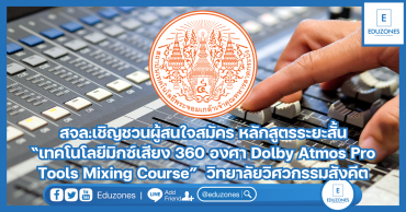 สจล.เชิญชวนผู้สนใจสมัคร หลักสูตรระยะสั้น “เทคโนโลยีมิกซ์เสียง 360 องศา Dolby Atmos Pro Tools Mixing Course” วิทยาลัยวิศวกรรมสังคีต EZ Webmaster February 16, 2024 วิทยาลัยวิศวกรรมสังคีต สถาบันเทคโนโลยีพระจอมเกล้าเจ้าคุณทหารลาดกระบังกำหนดจัดงานอบรมหลักสูตรระยะสั้น “เทคโนโลยีมิกซ์เสียง360 องศา Dolby Atmos Pro Tools Mixing Course” ให้กับบุคคลที่สนใจสมัครเรียน สอนโดย อาจารย์ผู้เชี่ยวชาญด้าน Dolby Atmos Mixing อันดับ 1 ของประเทศไทย ได้แก่ อ.บอย อินคา (วรวิทย์ พิกุลทอง), อ.ติ๊ด (โสฬส ปุณกะบุตร), อ.หนี่ง (เกรียงไกร กุศลจริยากูล) เรียนทั้งหมด 4 วัน ตั้งแต่เวลา10.00 – 17.00 น. ณ ห้อง Immersive Sound Lab เรียนจบได้ประกาศนียบัตรรับรองจากวิทยาลัยวิศวกรรมสังคีต (IMSE)… Continue Reading