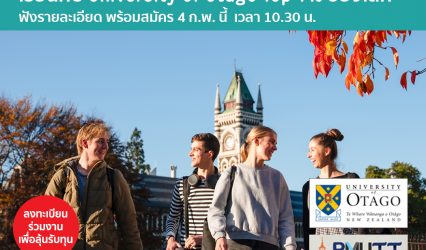 นักเรียน หน่วยงานการศึกษานิวซีแลนด์ เชิญร่วมสัมมนาออนไลน์ ปริญญาตรีไฮบริดนิวซีแลนด์ ฟรี EZ Webmaster January 31, 2023 โอกาสเรียนและทำงานที่นิวซีแลนด์มาแล้ว หน่วยงานการศึกษานิวซีแลนด์ ขอเชิญพ่อแม่ผู้ปกครองและน้องๆที่กำลังศึกษาในระดับมัธยมปลาย ผู้สนใจศึกษาต่อระดับปริญญาตรีที่ประเทศนิวซีแลนด์ เข้าร่วมงานสัมมนาออนไลน์ ฟรี พร้อมรับคำปรึกษาและแนะนำการศึกษาต่อปริญญาตรีไฮบริดนิวซีแลนด์ (New Zealand Hybrid Degree Year 3) หลักสูตรเรียนปริญญาตรีมหาวิทยาลัยนิวซีแลนด์ที่ไทย 1 เทอม…