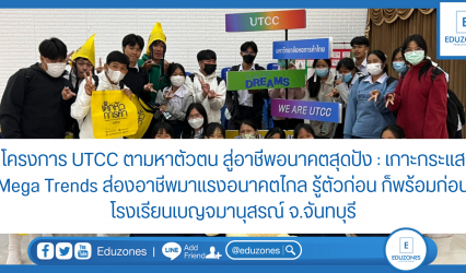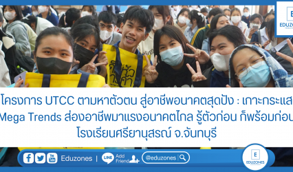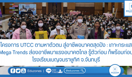 นักเรียน โครงการ UTCC ตามหาตัวตน สู่อาชีพอนาคตสุดปัง : เกาะกระแส Mega Trends ส่องอาชีพมาแรงอนาคตไกล รู้ตัวก่อน ก็พร้อมก่อน ที่โรงเรียนเบญจมราชูทิศ จ.จันทบุรี EZ Webmaster January 30, 2023 “สมัยก่อน เราต้องดั้นด้นสอบเข้ามหาวิทยาลัยเพื่อหาความรู้ แต่ยุคนี้ ความรู้วิ่งเข้าหาเรา ขอให้น้องๆตั้งเป้าหมายแล้วลุย ผิดพลาดเป็นเรื่องธรรมดา ให้รู้ว่าเริ่มใหม่ได้เสมอ”อ.สุกัญญา โสเก่าข่า (ครูแอน) ในโครงการ UTCC ตามหาตัวตน สู่อาชีพอนาคตสุดปัง : เกาะกระแส Mega…