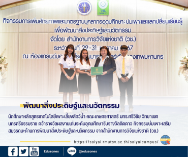น.ศ.มทร.ศรีวิชัย วิทยาเขตนครศรีธรรมราช คว้ารางวัลเด่นระดับอุดมศึกษา กิจกรรมบ่มเพาะเสริมสมรรถนะด้านการพัฒนาสิ่งประดิษฐ์และนวัตกรรม วช. tui sakrapee February 7, 2024 นักศึกษาหลักสูตรเทคโนโลยีเพาะเลี้ยงสัตว์น้ำ คณะเกษตรศาสตร์ มทร.ศรีวิชัย วิทยาเขตนครศรีธรรมราช คว้ารางวัลผลงานเด่นระดับอุดมศึกษารับรางวัลติดดาว กิจกรรมบ่มเพาะเสริมสมรรถนะด้านการพัฒนาสิ่งประดิษฐ์และนวัตกรรม สำนักงานการวิจัยแห่งชาติ (วช.) กระทรวงการอุดมศึกษา วิทยาศาสตร์ วิจัยและนวัตกรรม จัดกิจกรรมการเพิ่มศักยภาพและมาตรฐานบุคลากรอุดมศึกษา: บ่มเพาะและแลกเปลี่ยนเรียนรู้เพื่อพัฒนาสิ่งประดิษฐ์และนวัตกรรม ระหว่างวันที่ 29-31 มกราคม 2567 โดยในวันที่ 31 มกราคม 2567 ดร.วิภารัตน์ ดีอ่อง ผู้อำนวยการสำนักงานการวิจัยแห่งชาติ เป็นประธานและกล่าวแสดงความยินดีในการมอบรางวัลกิจกรรมติดดาวและเกียรติบัตรให้แก่ผู้เข้าร่วมกิจกรรมการบ่มเพาะ ณ ห้องแกรนด์บอลรูม โรงแรมมารวย การ์เด้น กรุงเทพมหานคร โดย คณะเกษตรศาสตร์ มทร.ศรีวิชัย วิทยาเขตนครศรีธรรมราช ส่งตัวแทนนักศึกษา ระดับปริญญาตรี ชั้นปีที่ 3 หลักสูตรเทคโนโลยีเพาะเลี้ยงสัตว์น้ำ เข้าร่วมการนำเสนอผลงาน ดังนี้ 1.นางสาวกรรณิการ์… Continue Reading