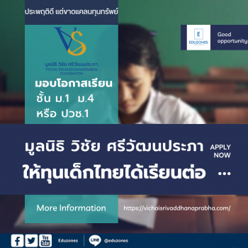 เรียนฟรี! คณะแพทยศาสตร์ มช. เปิดคอร์ส “กายวิภาคศาสตร์มนุษย์พื้นฐาน” เรียนออนไลน์ได้ถึง 31 ก.ค. 2569 EZ WebmasterApril 22, 2026 🧠✨ เรียนฟรี! คณะแพทยศาสตร์ มช. เปิดคอร์ส “กายวิภาคศาสตร์มนุษย์พื้นฐาน” เรียนออนไลน์ได้ถึง 31 ก.ค. 2569 โอกาสดีสำหรับน้อง ๆ นักเรียน นักศึกษา และผู้ที่สนใจสายสุขภาพ ล่าสุด คณะแพทยศาสตร์ มหาวิทยาลัยเชียงใหม่… เปิดจักรวาล “สายพยาบาล” ✨ ชวนน้อง ม.ปลาย ร่วมงานใหญ่แห่งปี จากสถาบันการพยาบาลศรีสวรินทิรา EZ WebmasterApril 19, 2026 🏥 เปิดจักรวาล “สายพยาบาล” ✨ ชวนน้อง ม.ปลาย ร่วมงานใหญ่แห่งปี จากสถาบันการพยาบาลศรีสวรินทิรา ใครสนใจสายสุขภาพ ห้ามพลาด! ✨สถาบันการพยาบาลศรีสวรินทิรา สภากาชาดไทย ขอเชิญชวนน้อง ๆ ระดับมัธยมปลาย และประชาชนทั่วไป เข้าร่วมกิจกรรมเปิดบ้านสุดยิ่งใหญ่ ภายใต้ธีม… ม.เกริก ผนึกกำลัง 14 สถาบันอุดมศึกษาชั้นนำ ร่วมลงนาม MOU ยกระดับการพัฒนาสังคมและงานวิจัยระดับชาติ tui sakrapeeApril 15, 2026 มหาวิทยาลัยเกริก ผนึกกำลัง 14 สถาบันอุดมศึกษาชั้นนำ ร่วมลงนาม MOU ยกระดับการพัฒนาสังคมและงานวิจัยระดับชาติ ณ สถาบันบัณฑิตพัฒนบริหารศาสตร์ (NIDA) วันที่ 9 เมษายน 2569 ณ สถาบันบัณฑิตพัฒนบริหารศาสตร์ (NIDA) มหาวิทยาลัยเกริก… ราชมงคลพระนคร ร่วมสนับสนุนกิจกรรมในงานกระตุ้นเศรษฐกิจรัชดา-ประชาชื่น สำนักงานเขตบางซื่อ tui sakrapeeApril 9, 2026 ดร.ณัฐวรพล รัชสิริวัชรบุล อธิการบดีมหาวิทยาลัยเทคโนโลยีราชมงคลพระนคร มอบหมายให้ ผศ.ศรัทธา แข่งเพ็ญแข ผู้ช่วยอธิการบดี เข้าร่วมประชุมและประสานงาน โดยมีผศ.ดร.ยุทธภูมิ สุวรรณเวช รองอธิการบดี เป็นผู้กำกับดูแลในการสนับสนุน จัดกิจกรรมในงานกระตุ้นเศรษฐกิจรัชดา-ประชาชื่น โดยสำนักงานเขตบางซื่อ ซึ่งจัดในพื้นที่บริเวณสวนสุขภาพแยกประชานุกูล ระหว่างวันที่ 19-27 มี.ค.2569… Search for: Search Classic Blog มูลนิธิ วิชัย ศรีวัฒนประภา เปิดให้ทุนน้องๆ ที่ต้องการเรียนต่อชั้น ม.1, ม.4 หรือ ปวช.1 มีความประพฤติดี แต่ขาดแคลนทุนทรัพย์ tui sakrapee February 7, 2024 มูลนิธิ วิชัย ศรีวัฒนประภา มอบโอกาสทางการศึกษาให้กับน้องๆ ที่ต้องการเรียนต่อชั้น ม.1, ม.4 หรือ ปวช.1 มีความประพฤติดี แต่ขาดแคลนทุนทรัพย์ โดยส่งใบสมัครขอรับทุนการศึกษาได้ตั้งแต่วันนี้ – 31 มีนาคม 2567 หรือสอบถามรายละเอียดเพิ่มเติม โทรศัพท์ 02-677-8888 ต่อ 1221, 1222 คุณสมบัติของผู้มีสิทธิ์ได้รับทุน เป็นนักเรียนที่ต้องการเรียนต่อชั้นมัธยมศึกษาปีที่ 1 เป็นนักเรียนที่ต้องการเรียนต่อชั้นมัธยมศึกษาปีที่ 4 หรือ ปวช.1 ครอบครัวขาดแคลนทุนทรัพย์ ขาดบุพการี หรืออยู่ในอุปการะของบุคคลอื่น ที่มีรายได้รวมต่ำกว่า 150,000 บาทต่อปี อยู่ในพื้นที่ห่างไกลทุรกันดารการคมนาคมยากลำบาก มีความประพ