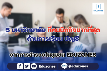 EZ Webmaster February 5, 2024 5 มหาวิทยาลัย ที่คนนึกถึงมากที่สุด ด้านการเรียนบัญชี จากการสำรวจของ EDUZONES EZ Webmaster February 5, 2024 ถ้าพูดถึงการเรียน คณะบัญชี ทุกคนจะนึกถึงมหาวิทยาลัยไหน ทาง EDUZONES ได้สำรวจความคิดเห็นของคนส่วนใหญ่ในชุมชน ในหัวข้อ ถ้านึกถึงการเรียนบัญชี ทุกคนนึกถึงมหาวิทยาลัยไหน เริ่มเก็บข้อมูลตั้งแต่วันที่ 8 พฤศจิกายน 2566 จะมีที่ไหนบ้าง มาดูกันเลย อันดับที่ 1 จุฬาลงกรณ์มหาวิทยาลัย อันดับที่ 2 มหาวิทยาลัยหอการค้าไทย อันดับที่ 3 มหาวิทยาลัยธรรมศาสตร์ อันดับที่ 4 มหาวิทยาลัยเทคโนโลยีมหานคร อันดับที่ 5 มหาวิทยาลัยอัสสัมชัญ มหาวิทยาลัยที่คนส่วนใหญ่ในชุมชน EDUZONES… Continue Reading