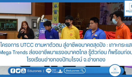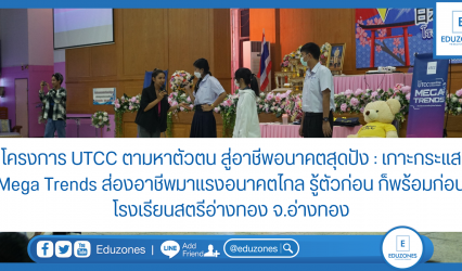 นักเรียน โครงการ UTCC ตามหาตัวตน สู่อาชีพอนาคตสุดปัง : เกาะกระแส Mega Trends ส่องอาชีพมาแรงอนาคตไกล รู้ตัวก่อน ก็พร้อมก่อน ที่โรงเรียนสตรีอ่างทอง จ.อ่างทอง EZ Webmaster January 20, 2023 “น้องๆวันนี้มีโอกาสอยู่รอบตัว แหล่งเรียนรู้ก็มีทั่วไป ขอแค่ตั้งเป้าหมายแล้วลุยให้สุด ผิดพลาดบ้างเป็นธรรมดา ให้รู้แค่ว่าเราจะลุกขึ้นมาใหม่ได้และแข็งแกร่งกว่าเดิม” อ.สุกัญญา โสเก่าข่า (ครูแอน) ในโครงการ UTCC ตามหาตัวตน สู่อาชีพอนาคตสุดปัง : เกาะกระแส Mega Trends…