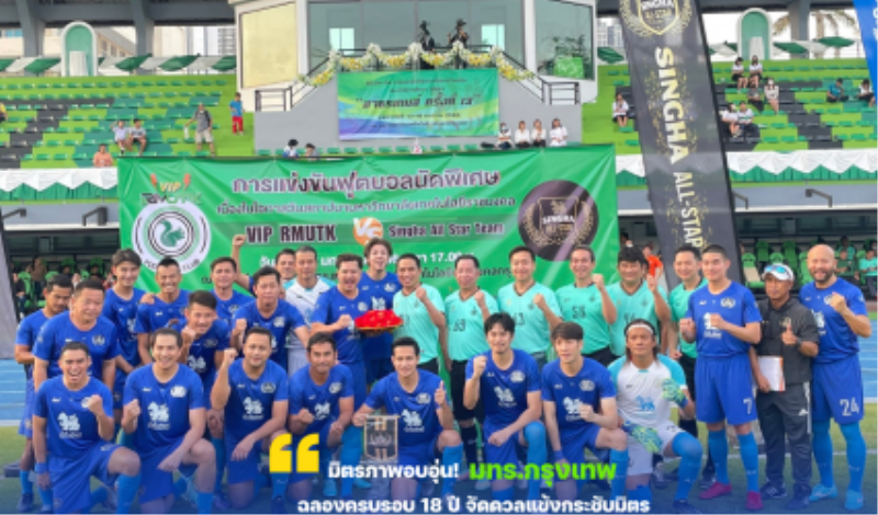 Blogกิจกรรมครู-อาจารย์ มิตรภาพอบอุ่น! มทร.กรุงเทพ ฉลองครบรอบ 18 ปี จัดดวลแข้งกระชับมิตร VIP RMUTK ปะทะ SINGHA ALL STAR tui sakrapee January 20, 2023 มทร.กรุงเทพ ฉลองครบรอบ 18 ปี จัดดวลแข้งกระชับมิตร VIP RMUTK ปะทะ SINGHA ALL STAR ท่ามกลางบรรยากาศที่เต็มไปด้วยความสนุกสนานและอบอุ่นจากกองเชียร์และผู้เล่นทั้งสองทีม เมื่อวันที่ 18 ม.ค. 2566…