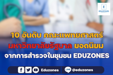 10 อันดับ คณะแพทยศาสตร์ มหาวิทยาลัยรัฐบาล ยอดนิยม จากการสำรวจของ EDUZONES EZ Webmaster February 1, 2024 ถ้าพูดถึง คณะแพทยศาสตร์ มหาวิทยาลัยรัฐบาล ทุกคนจะนึกถึงมหาวิทยาลัยไหน ทาง EDUZONES ได้สำรวจความคิดเห็นของคนส่วนใหญ่ในชุมชน ในหัวข้อ ถ้านึกถึงคณะแพทยศาสตร์ มหาวิทยาลัยรัฐบาล ทุกคนนึกถึงมหาวิทยาลัยไหน เริ่มเก็บข้อมูลตั้งแต่วันที่ 7 มกราคม 2567 จะมีที่ไหนบ้าง มาดูกันเลย อันดับที่ 1 มหาวิทยาลัยมหิดล อันดับที่ 2 มหาวิทยาลัยขอนแก่น อันดับที่ 3 จุฬาลงกรณ์มหาวิทยาลัย อันดับที่ 4 มหาวิทยาลัยเชียงใหม่ อันดับที่ 5 มหาวิทยาลัยสงขลานครินทร์ อันดับที่ 6 มหาวิทยาลัยธรรมศาสตร์ อันดับที่ 7 มหาวิทยาลัยนเรศวร อันดับที่ 8 วิทยาลัยแพทยศาสตร์พระมงกุฎเกล้า อันดับที่ 9… Continue Reading