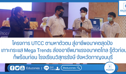 นักเรียน โครงการ UTCC ตามหาตัวตน สู่อาชีพอนาคตสุดปัง : เกาะกระแส Mega Trends ส่องอาชีพมาแรงอนาคตไกล รู้ตัวก่อน ก็พร้อมก่อน ที่โรงเรียนวิสุทธรังษี จังหวัดกาญจนบุรี EZ Webmaster January 18, 2023 “จะเล่นเกม เล่นดนตรี เก่งวิชาการ เก่งกีฬา เก่งค้าขาย ฯลฯ ก็ไปให้สุดเพราะเป็นโอกาสได้ลองและรู้ว่าเป็นตัวเราจริงๆ ไหม” อ.จิตปภา สุพันธะ (ครูมิกกี้) ได้บรรยายในหัวข้อ ตามหาตัวตน ค้นหาอาชีพอนาคตสุดปัง ณ โรงเรียนวิสุทธรังษี…