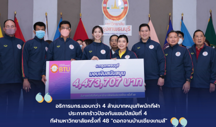Blogกิจกรรมนักศึกษา อธิการมกธ.มอบกว่า 4 ล้านบาทหนุนทัพนักกีฬา ประกาศกร้าวป้องกันแชมป์สมัยที่ 4 กีฬามหาวิทยาลัยครั้งที่ 48 “ดอกจานบ้านเชียงเกมส์” tui sakrapee January 18, 2023 ศ.ดร.บังอร เบ็ญจาธิกุล อธิการบดีมหาวิทยาลัยกรุงเทพธนบุรี (มกธ.) ให้โอวาทและกำลังใจแก่ผู้ฝึกสอนและทัพนักกีฬาของมหาวิทยาลัยกรุงเทพธนบุรีก่อนจะเดินทางเข้าร่วมการแข่งขันกีฬามหาวิทยาลัยแห่งประเทศไทย ครั้งที่ 48 พร้อมประกาศจะป้องกันแชมป์สมัยที่ 4 ในการแข่งขันกีฬาดังกล่าวด้วย ในโอกาสนี้ อธิการบดีมหาวิทยาลัยกรุงเทพธนบุรี ได้มอบเงินสนับสนุนจำนวน 4,473,707 บาท แก่ทัพนักกีฬาของมหาวิทยาลัยฯ…