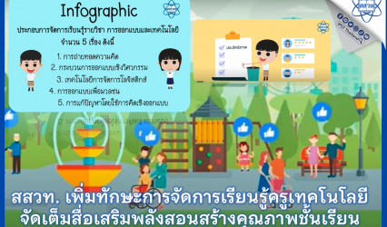 นักเรียน สสวท. เพิ่มทักษะการจัดการเรียนรู้ครูเทคโนโลยี จัดเต็มสื่อเสริมพลังสอนสร้างคุณภาพชั้นเรียน EZ Webmaster January 18, 2023 สถาบันส่งเสริมการสอนวิทยาศาสตร์และเทคโนโลยี (สสวท.) ชวนคุณครูพัฒนาทักษะการสอนด้วยสื่ออินโฟกราฟิกแบบภาพเคลื่อนไหว เข้าใจง่าย ใช้เป็นสื่อเสริมความเข้าใจเนื้อหาวิชาการออกแบบและเทคโนโลยี ที่เว็บไซต์ https://myipst.ipst.ac.th พบกับ 5 เรื่องเด่น “การถ่ายทอดความคิด” ชั้นมัธยมศึกษาปีที่ 1 – 5 เรื่อง “กระบวนการออกแบบเชิงวิศวกรรม” ใช้ประกอบการจัดการเรียนรู้ชั้นมัธยมศึกษาปีที่ 1-5 เรื่อง “เทคโนโลยีการจัดการโลจิสติกส์” ใช้ประกอบการจัดการเรียนรู้ชั้นมัธยมศึกษาปีที่ 3 เรื่อง “การออกแบบเพื่อมวลชน” ใช้ประกอบการจัดการเรียนรู้…