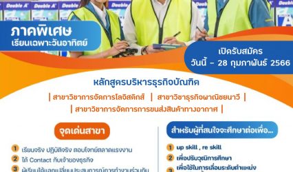 Blogนักเรียน โลจิสติกส์ (ภาคพิเศษ) สวนสุนันทา เปิดรับนักศึกษาใหม่ภาคเรียนที่ 1 ปีการศึกษา 2566 เรียนวันอาทิตย์วันเดียว tui sakrapee January 17, 2023 สมัครเรียน ภาคเรียนที่ 1 ปีการศึกษา 2566 โลจิสติกส์ (ภาคพิเศษ) กับสวนสุนันทา …..เรียนวันอาทิตย์วันเดียว….. เลือกเรียนได้ทั้ง “กรุงเทพฯ” หรือ “นครปฐม” อยากเรียนสาขาไหนเลือกเลย… ห้องเรียน “กรุงเทพฯ”…