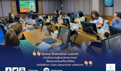 นักศึกษากิจกรรม ‘ชัยวัฒน์ ลิ้มลิขิตอักษร’ คนรักษ์ป่า แบ่งปันความรู้และประสบการณ์ ชี้ช่องการท่องเที่ยววิถีใหม่แก่นักศึกษา ป.เอก นันทนาการฯ ม.ศิลปากร tui sakrapee January 16, 2023 คุณชัยวัฒน์ ลิ้มลิขิตอักษร ผู้อำนวยการสำนักบริหารพื้นที่อนุรักษ์ที่ 9 อุบลราชธานี อดีตหัวหน้าอุทยานแห่งชาติแก่งกระจาน จ.เพชรบุรี ให้เกียรติมาสอนนักศึกษา หลักสูตรปรัชญาดุษฎีบัณฑิต สาขาวิชาการจัดการนันทนาการ การท่องเที่ยวและกีฬา รุ่นที่ 3 โดยมี ศ.ดร.คณิต เขียววิชัย…