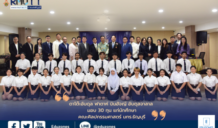 Blogนักศึกษา ดาโต๊ะอับดุล ฟาตาห์ บินฮัจญี อับดุลจาลาล มอบ 30 ทุน แก่นักศึกษาศิลปกรรม มทร.ธัญบุรี tui sakrapee January 16, 2023 ท่านดาโต๊ะอับดุล ฟาตาห์ บินฮัจญี อับดุลจาลาล บุตรบุญธรรมในองค์ประไหมสุหรีแห่งรัฐเปอร์ลิส ประเทศมาเลเซีย มอบทุนการศึกษา 30 ทุน ให้กับนักศึกษาคณะศิลปกรรมศาสตร์ ประจำปีการศึกษา 2565โดย มี รองศาสตราจารย์ ดร.สมหมาย ผิวสอาด…