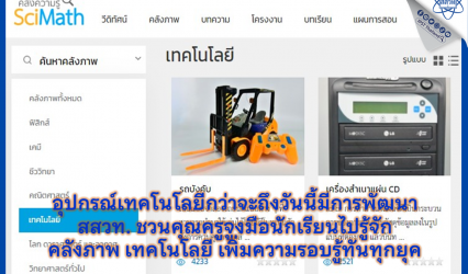 นักเรียน อุปกรณ์เทคโนโลยีกว่าจะถึงวันนี้มีการพัฒนา สสวท. ชวนคุณครูจูงมือนักเรียนไปรู้จัก คลังภาพ เทคโนโลยี เพิ่มความรอบรู้ทันทุกยุค EZ Webmaster January 16, 2023 วันเด็กใฝ่เรียนรู้ วันครูผู้ให้ปัญญา ไม่ว่าวันไหน ๆ ก็พัฒนาความรอบรู้กันได้ทันทุกยุค สถาบันส่งเสริมการสอนวิทยาศาสตร์และเทคโนโลยี (สสวท.) ชวนคุณครูจูงมือนักเรียนไปทำความรู้จักกับ คลังภาพ เทคโนโลยี ที่เยาวชนยุคนี้แม้อาจไม่ทันได้คุ้นเคยแต่ก็ไม่ควรมองข้ามเทคโนโลยีในยุคที่ผ่านมา ไม่ว่าจะเป็น แผ่นบันทึกหรือ Floppy Disk เครื่องสำเนาแผ่น CD DVD โทรศัพท์มือถือ โน๊ตบุ๊ก ไปจนถึง โดรน…
