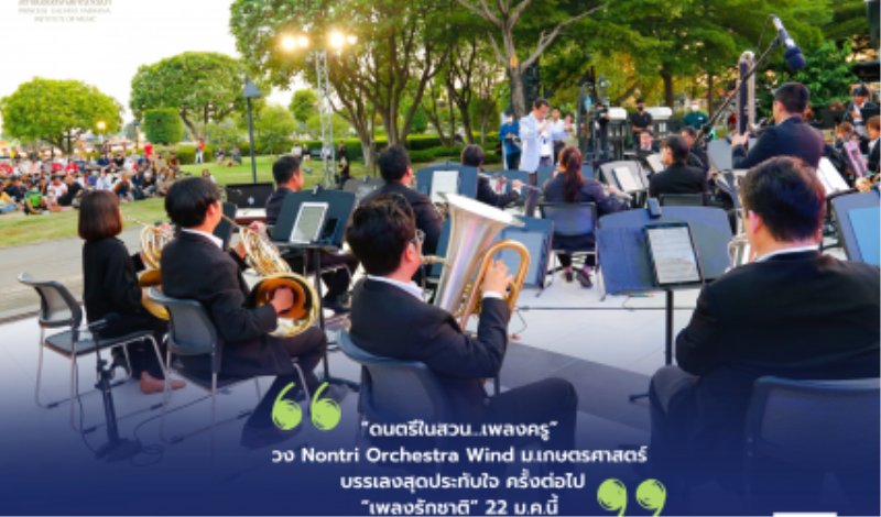 กิจกรรม “ดนตรีในสวน…เพลงครู” วง Nontri Orchestra Wind ม.เกษตรศาสตร์ บรรเลงสุดประทับใจ ครั้งต่อไป“เพลงรักชาติ” 22 ม.ค.นี้ tui sakrapee January 16, 2023 ภาพบรรยากาศ “ดนตรีในสวน…เพลงครู” ณ สวนหลวงพระราม 8 บางยี่ขัน บางพลัด กทม โดยความร่วมมือระหว่างสถาบันดนตรีกัลยาณิวัฒนา กรุงเทพมหานคร และมูลนิธิสุกรี เจริญสุข บรรเลงโดยวง Nontri Orchestra Wind…