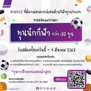 ราชมงคลพระนคร เปิดคัดคนเก่งกีฬา เข้าศึกษาต่อ ประจำปี 2567 จำนวน 30 ทุน tui sakrapee January 30, 2024 มหาวิทยาลัยเทคโนโลยีราชมงคลพระนคร เปิดรับสมัครและคัดเลือกนักศึกษาที่มีความสามารถทางกีฬาเด่น เข้าศึกษาต่อในระดับอุดมศึกษา ประเภททุนการศึกษาสำหรับนักศึกษาที่มีความสามารถพิเศษด้านกีฬา ประจำปีการศึกษา 2567 เพื่อเปิดโอกาสทางการศึกษาให้กับผู้ที่มีความสามารถเด่นชัดเชิงกีฬา และสนับสนุนส่งเสริมแผนพัฒนาการกีฬาของชาติ จำนวน 30 ทุน โดยชนิดกีฬาที่รับสมัคร ได้แก่ วอลเลย์บอล วอลเลย์บอลชายหาด ฟุตบอก ฟุตซอล ฟุตวอลเลย์ บาสเกตบอล เซปักตะกร้อ เปตอง มวยสากลสมัครเล่น มวยไทยสมัครเล่น ปันจักสีลัต คาราเต้โด เทควัดโด แบตมินตัน เทเบิลเทนนิส ลีลาศ กรีฑา เทนนิส ว่ายน้ำ หมากรุก หมากล้อม ตะกร้อลอดห่วง จักรยาน หรือกีฬาอื่น ๆ โดยผู้สมัครจะต้องมีคุณสมบัติ ดังนี้ เกรดเฉลี่ยสะสมไม่ต่ำกว่า 2.00… Continue Reading