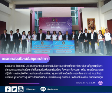 tui sakrapee January 30, 2024 กรรมการส่งเสริมฯสวนสุนันทา เยี่ยมชมศูนย์การศึกษาระนองพร้อมมอบครุภัณฑ์สนับสนุนการศึกษา tui sakrapee January 30, 2024 ดร.สมชาย อัศวเศรณี ประธานคณะกรรมการส่งเสริมกิจการมหาวิทยาลัย มหาวิทยาลัยราชภัฏสวนสุนันทา ได้นำคณะกรรมการส่งเสริมฯ เข้าเยี่ยมชมห้องประชุม ห้องเรียน ห้องสมุด ห้องนวดภายในอาคารเรียนรวมและปฏิบัติการ พร้อมรับฟังความต้องการในการพัฒนาศูนย์การศึกษาจังหวัดระนอง ณ ห้องประชุม A306 ศูนย์การศึกษาจังหวัดระนอง โดย อาจารย์ ดร.สุวัฒน์ นวลขาว ผู้อำนวยการศูนย์การศึกษาจังหวัดระนอง นำคณะผู้บริหารและนักศึกษาให้การต้อนรับอย่างอบอุ่น ทั้งนี้คณะกรรมการฯได้ให้คำแนะนำในการพัฒนาศูนย์การศึกษาจังหวัดระนอง เช่น การจัดทำหลักสูตรระยะสั้น ที่จบแล้วสามารถประกอบอาชีพได้ทันที, การทำการตลาดที่ดึงดูดใจผู้เรียน การประชาสัมพันธ์ส่วนราชการเกี่ยวกับการให้บริการห้องประชุม เป็นต้น . หลังจากนั้นคณะกรรมการส่งเสริมฯได้ประชุมคณะกรรมการส่งเสริมกิจการมหาวิทยาลัย วาระพิเศษ ครั้งที่ 1/2567… Continue Reading