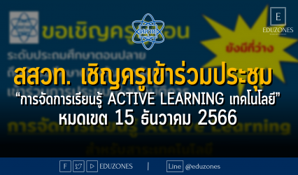 ครู-อาจารย์ สสวท. เชิญครูเข้าร่วมประชุม “การจัดการเรียนรู้ Active Learning เทคโนโลยี” – หมดเขต 15 ธันวาคม 2566 EZ Webmaster January 10, 2023 สถาบันส่งเสริมการสอนวิทยาศาสตร์และเทคโนโลยี (สสวท.) โดยโครงการโรงเรียนคุณภาพ SMT ตามมาตรฐาน สสวท. ขอเชิญครูในโรงเรียนคุณภาพฯ ทุกสังกัด สมัครเข้าร่วมการประชุมปฏิบัติการ “การจัดการเรียนรู้ Active Learning สาระเทคโนโลยี” ภาคตะวันออกเฉียงเหนือตอนบน อบรมวันที่ 9…