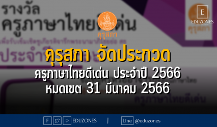 ครู-อาจารย์ คุรุสภา จัดประกวด ครูภาษาไทยดีเด่น ประจำปี 2566 – หมดเขต 31 มีนาคม 2566 EZ Webmaster January 5, 2023 ผศ.ดร.อมลวรรณ วีระธรรมโม เลขาธิการคุรุสภา กล่าวว่า สำนักงานเลขาธิการคุรุสภากำหนดคัดเลือกครูภาษาไทยในประจำการของสถาบันการศึกษาระดับต่างๆ ทั้งของรัฐและเอกชน รวมทั้งผู้สอนภาษาไทยในระดับอุดมศึกษาที่มีผลงานดีเด่นเพื่อประกาศเกียรติคุณเป็นครูภาษาไทยดีเด่น ประจำปี 2566 จำนวนไม่เกิน 50 รางวัล จะได้รับรางวัลเข็มเชิดชูเกียรติจารึกพระนามาภิไธยย่อ สธ โล่ประกาศเกียรติคุณ และเกียรติบัตร …