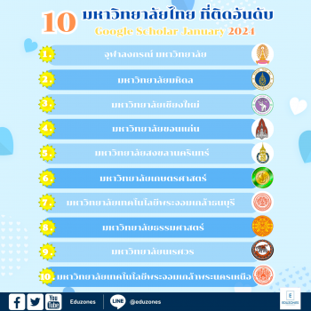 จุฬาฯยังครองที่ 1 Google Scholar JANUARY 2024 สวนสุนันทา-มทร.ธัญบุรี และม.รังสิต รักษาอันดับ 1 ของกลุ่ม tui sakrapee January 24, 2024 Google Scholar JANUARY 2024 (version 17.01) ประกาศผลการจัดอันดับ “จุฬาฯ” ยังอยู่ที่ 1 ประเทศ “สวนสุนันทา” ยังยืนผงาด ควง “มทร.ธัญบุรี” รั้งที่ 1 กลุ่มม.ราชภัฏ และ กลุ่มม.เทคโนโลยีราชมงคล ด้าน “ม.รังสิต” ครองเบอร์ 1 มหาวิทยาลัยเอกชนอีกสมัย TRANSPARENT RANKING: Top Universities by Citations in Top Google Scholar profiles JANUARY 2024 (version 17.01). ประกาศผลการจัดอันดับ โดยข้อมูลนี้อาจจะมีการเปลี่ยนแปลงได้… Continue Reading