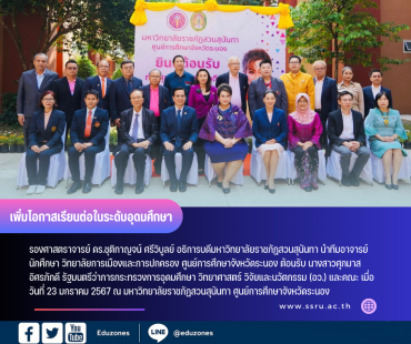 อธิการบดีมรภ.สวนสุนันทา นำคณะให้การต้อนรับ รมว.อว.ที่ศูนย์การศึกษาจังหวัดระนอง พร้อมเดินหน้าโครงการ TCAS ลดค่าใช้จ่าย เพิ่มโอกาส เรียนต่อระดับอุดมศึกษา tui sakrapee January 24, 2024 รองศาสตราจารย์ ดร.ชุติกาญจน์ ศรีวิบูลย์ อธิการบดีมหาวิทยาลัยราชภัฏสวนสุนันทา นำทีมอาจารย์ นักศึกษา วิทยาลัยการเมืองและการปกครอง ศูนย์การศึกษาจังหวัดระนอง ต้อนรับ นางสาวศุภมาส อิศรภักดี รัฐมนตรีว่าการกระทรวงการอุดมศึกษา วิทยาศาสตร์ วิจัยและนวัตกรรม (อว.) และคณะ เมื่อวันที่ 23 มกราคม 2567 ณ มหาวิทยาลัยราชภัฏสวนสุนันทา ศูนย์การศึกษาจังหวัดระนอง รัฐมนตรีฯ อว. ได้ใช้โอกาสนี้ในการขอบคุณโครงการ TCAS ลดค่าใช้จ่าย เพิ่มโอกาสเรียนต่อในระดับอุดมศึกษา ซึ่งเป็นโครงการที่วิทยาลัยการเมืองและการปกครอง มหาวิทยาลัยราชภัฏสวนสุนันทา เป็นผู้รับผิดชอบ และดำเนินการมาอย่างต่อเนื่อง ทั้งนี้ รมว.อว.พร้อมคณะผู้บริหาร อว. ได้พบปะกลุ่มนักเรียน จ.ระนอง กว่า 100 คน จาก… Continue Reading