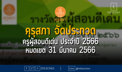 ครู-อาจารย์ คุรุสภา จัดประกวด ครูผู้สอนดีเด่น ประจำปี 2566 – หมดเขต 31 มีนาคม 2566 EZ Webmaster January 4, 2023 ผศ.ดร.อมลวรรณ วีระธรรมโม เลขาธิการคุรุสภา กล่าวว่า สำนักงานเลขาธิการคุรุสภา ดำเนินการยกย่องเชิดชูเกียรติผู้ประกอบวิชาชีพครูในสถานศึกษาที่จัดการศึกษาระดับปฐมวัย ระดับการศึกษาขั้นพื้นฐาน หรือระดับประกาศนียบัตรวิชาชีพ (ปวช.) ทั้งภาครัฐและเอกชน ที่มีนวัตกรรมในการจัดการเรียนรู้ที่มีประสิทธิภาพส่งผลต่อคุณภาพของผู้เรียน และเป็นแบบอย่างที่ดีในการประกอบวิชาชีพครูให้เป็นที่ประจักษ์แก่สังคม เพื่อคัดเลือกรับรางวัลครูผู้สอนดีเด่น ประจำปี 2566 จำนวน…