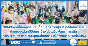 EZ Webmaster January 18, 2024 OKMD จัดเต็มกิจกรรมวันเด็ก ปลุกความสุข สนุกไปกับการเล่น ด้วยของเล่นภูมิปัญญาไทย ส่งเสริมพัฒนาการเด็ก “เศรษฐา” ย้ำ การเรียนรู้ต้องใช้เวลา ขอให้พัฒนาอย่างต่อเนื่อง EZ Webmaster January 18, 2024 สำนักงานบริหารและพัฒนาองค์ความรู้ (องค์การมหาชน) หรือ OKMD ส่งเสริมและพัฒนาการเรียนรู้ทุกช่วงวัย โดยในปีนี้จัดกิจกรรมเนื่องในวันเด็กแห่งชาติปี 2567 ภายใต้ธีม “Happy Children’s Day ปลุกความสุข สนุกไปกับการเล่น @ OKMD Playground” ณ ตึกสันติไมตรี ทำเนียบรัฐบาล ภายในงานมีกิจกรรมสนุกสุดสร้างสรรค์ พร้อมส่งเสริมการเรียนรู้และพัฒนาการจากของเล่นภูมิปัญญาไทยและของเล่นไม้ เพื่อส่งเสริมการเรียนรู้ และพัฒนาการเด็ก กิจกรรมภายในงานเป็นอย่างไปอย่างคึก โดยคุณพ่อคุณแม่ผู้ปกครองต่างพาบุตรหลานเข้าร่วมกิจกรรม ซึ่งได้ทั้งทักษะการใช้ร่างกาย การฝึกคิดวิเคราะห์ สร้างความสนุกสนานแปลกใหม่ ได้อยู่ในบรรยากาศและสิ่งแวดล้อมที่ต่างออกไป อีกทั้งพบปะแลกเปลี่ยนประสบการณ์กับเพื่อนใหม่และครอบครัวอื่น ๆ โดยกิจกรรมในปีนี้มีผู้เข้าร่วมกว่า 1,500 คน สำหรับของเล่นภูมิปัญญาไทยและของเล่นไม้ ที่ OKMD ได้นำมาได้แก่ ลูกข่างไม้ ฝึกสมาธิ สนุกสนานเพลิดเพลิน พัฒนากล้ามเนื้อมัดเล็ก , คอปเตอร์ไม้ไผ่… Continue Reading