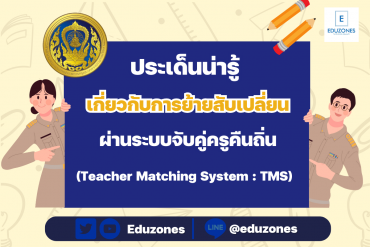 EZ Webmaster January 16, 2024 ประเด็นน่ารู้เกี่ยวกับการย้ายสับเปลี่ยน ตามหลักเกณฑ์เเละวิธีการย้ายฯ ว18/2566 ผ่านระบบจับคู่ครูคืนถิ่น EZ Webmaster January 16, 2024 ระบบ TMS คืออะไร ? ระบบ TMS หรือ Teacher Matching System คือ ระบบจับคู่ครูคืนถิ่น ที่มีเป้าหมายในการอำนวยความสะดวกให้กับคุณครูที่ต้องการขอย้ายสับเปลี่ยนเพื่อกลับไปสอนในภูมิลำเนาของตัวเองผ่านระบบออนไลน์ โดยไม่จำเป็นต้องเดินทางมาสำนักงานเขตพื้นที่การศึกษา หรือ หน่วยงานการศึกษา เพื่อยื่นคำร้องขอย้ายอีกต่อไป ซึ่งคุณครูที่ต้องการขอย้ายสับเปลี่ยนจะต้องดำเนินการผ่านระบบ TMS เพียงช่องทางเดียวเท่านั้น ใครสามารถยื่นคำร้องขอย้ายสับเปลี่ยนผ่านระบบ TMS ได้บ้าง ? เป็นผู้ดำรงตำแหน่งครู หรือเป็นผู้ที่ผ่านการเตรียมความพร้อมและพัฒนาอย่างเข้ม ในตำแหน่งครูผู้ช่วยและได้รับคำสั่งบรรจุและแต่งตั้งให้ดำรงตำแหน่งครูแล้ว และต้องไม่ติดเงื่อนไขการบรรจุและแต่งตั้งตามหลักเกณฑ์และวิธีการสอบแข่งขันหรือเงื่อนไขอื่นใดที่ก.ค.ศ. กำหนด หรือหน่วยงานอื่นกำหนด ปฏิบัติหน้าที่ในสถานศึกษาปัจจุบันมาแล้วไม่น้อยกว่า 24… Continue Reading