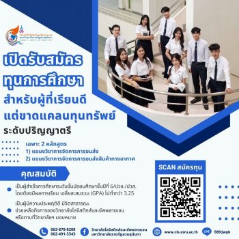เรียนดี แต่ขาดแคลน “โลจิสติกส์ สวนสุนันทา” เปิดให้ทุนผู้จบ ม.6-ปวช.-ปวส. เรียนฟรีระดับปริญญาตรี tui sakrapee January 16, 2024 เปิดรับสมัครทุนการศึกษา สำหรับผู้ที่เรียนดีแต่ขาดแคลนทุนทรัพย์ ระดับปริญญาตรี วิทยาลัยโลจิสติกส์และซัพพลายเชน มหาวิทยาลัยราชภัฏสวนสุนันทา เฉพาะ 2 หลักสูตร 1) แขนงวิชาการจัดการการขนส่ง 2) แขนงวิชาการจัดการการขนส่งสินค้าทางอากาศ คุณสมบัติ 1. เป็นผู้สำเร็จการศึกษาระดับชั้นมัธยมศึกษาชั้นปีที่ 6/ปวช./ปวส. โดยต้องมีผลการเรียน เฉลี่ยสะสมรวม (GPA) ไม่ต่ำกว่า 3.25 2. เป็นผู้มีความประพฤติดี มีจิตสาธารณะ ช่วยเหลือกิจการของวิทยาลัยโลจิสติกส์และซัพพลายเชน หรือตามที่วิทยาลัยฯ มอบหมาย • Contact Us Tel » 063-878-8208 I 062-491-3343 Facebook » โลจิสติกส์ สวนสุนันทา Line ID »… Continue Reading