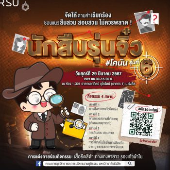 EZ Webmaster January 15, 2024 ม.รังสิต ชวนน้อง ม.ปลาย ร่วมแคมป์ “นักสืบรุ่นจิ๋ว” (รุ่นที่ 6) ฟรี! EZ Webmaster January 15, 2024 คณะอาชญาวิทยาและการบริหารงานยุติธรรม มหาวิทยาลัยรังสิต เปิดรับสมัครน้องมัธยมศึกษาตอนปลาย มาร่วมไขคดี โคฟเป็นโคนันไปด้วยกันกับ แคมป์ “นักสืบรุ่นจิ๋ว” (รุ่นที่ 6) ที่จะเปิดประสบการณ์ด้านการสืบสวน สอบสวน ภายในงานมีกิจกรรม 4 ฐาน ได้แก่ การปัดหาลายนิ้วมือแฝง การตรวจสถานที่เกิดเหตุ การสืบสวน สอบสวน และการใช้เทคโนโลยีในการป้องกันอาชญากรรมและการระงับเหตุ ในวันศุกร์ที่ 29 มีนาคม 2567 ตั้งแต่เวลา 09.00-15.00 น. ณ ห้อง 1-301 อาคารอาทิตย์ อุไรรัตน์… Continue Reading