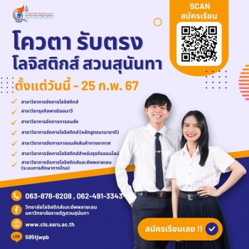 tui sakrapee January 12, 2024 7 สาขาตอบโจทย์อนาคต ‘โลจิสติกส์ สวนสุนันทา’ เปิดรับรอบโควตารับตรง วันนี้! tui sakrapee January 12, 2024 โลจิสติกส์ สวนสุนันทา เปิดรับสมัครนักศึกษา โควตา รับตรง ตั้งแต่วันนี้ – 25 ก.พ. 67 เปิดรับ 7 สาขาวิชา 1. สาขาวิชาการจัดการโลจิสติกส์ 2. สาขาวิชาธุรกิจพาณิชยนาวี 3. สาขาวิชาการจัดการการขนส่ง 4. สาขาวิชาการจัดการโลจิสติกส์ (หลักสูตรนานาชาติ) 5. สาขาวิชาการจัดการการขนส่งสินค้าทางอากาศ 6. สาขาวิชาการจัดการโลจิสติกส์สำหรับธุรกิจออนไลน์ 7. สาขาวิชาการจัดการโลจิสติกส์และซัพพลายเชน (ระบบการศึกษาทางไกล) สมัครคลิกเลย : https://forms.gle/Vx67PmqMBFwaUz7SA เรียนกับอาจารย์ผู้เชี่ยวชาญและผู้มีประสบการณ์โดยตรงในธุรกิจโลจิสติกส์ มีใบรองรับมาตรฐานฝีมือแรงงาน… Continue Reading