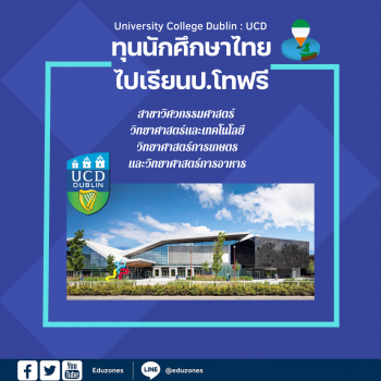tui sakrapee January 9, 2024 มหาวิทยาลัยคอลเลจดับลิน สาธารณรัฐไอร์แลนด์ ให้ทุนนักศึกษาไทย ไปเรียนป.โทฟรี สาขาวิศวะ วิทย์และเทคโนโลยี วิทย์การเกษตร และวิทยาศาสตร์การอาหาร tui sakrapee January 9, 2024 ประกาศรับสมัครคัดเลือกบุคคลเพื่อรับทุนการศึกษาไปศึกษาวิชา ณ มหาวิทยาลัยคอลเลจดับลิน (University College Dublin : UCD) สาธารณรัฐไอร์แลนด์ ประจำปีการศึกษา 2567 (ค.ศ. 2024) ระดับปริญญาโท หลักสูตรภาษาอังกฤษ มหาวิทยาลัยคอลเลจดับลิน (University College Dublin : UCD) สาธารณรัฐไอร์แลนด์ ได้ทูลเกล้าฯ ถวายทุนการศึกษาแด่สมเด็จพระกนิษฐาธิราชเจ้า กรมสมเด็จพระเทพรัตนราชสุดา ฯ สยามบรมราชกุมารี เพื่อพระราชทานแก่ บุคคลที่มีคุณสมบัติตามข้อกำหนดของมหาวิทยาลัย ไปศึกษาระดับปริญญาโท ในสาขาวิศวกรรมศาสตร์ วิทยาศาสตร์และเทคโนโลยี… Continue Reading