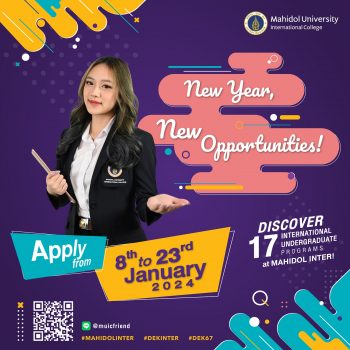 tui sakrapee January 5, 2024 มหิดลอินเตอร์ เปิดรับนักศึกษาใหม่ระดับปริญญาตรีทางออนไลน์ วันที่ 8 – 23 มกราคม 2567 tui sakrapee January 5, 2024 มหิดลอินเตอร์ เปิดรับนักศึกษาใหม่ระดับปริญญาตรีทางออนไลน์ วันที่ 8 – 23 มกราคม 2567 วิทยาลัยนานาชาติ มหาวิทยาลัยมหิดล (มหิดลอินเตอร์) เปิดรับสมัครนักศึกษาใหม่ระดับปริญญาตรี หลักสูตรนานาชาติ รอบที่ 4 ประจำปีการศึกษา 2565-2566 จำนวน 17 หลักสูตรทางออนไลน์ ระหว่างวันที่ วันที่ 8 – 23 มกราคม 2567 โดยมีรายละเอียดดังนี้ หลักสูตรนิเทศศาสตรบัณฑิต(BACHELOR OF COMMUNICATION ARTS : B.COM.ARTS) – สาขาวิชาสื่อและการสื่อสาร (Media and Communication) หลักสูตรศิลปกรรมศาสตรบัณฑิต(BACHELOR OF FINE ARTS : B.F.A.) – สาขาวิชาออกแบบนิเทศศิลป์ (Communication Design) หลักสูตรศิลปศาสตรบัณฑิต(BACHELOR OF ARTS : B.A.) – สาขาวิชาความสัมพันธ์ระหว่างประเทศและกิจการทั่วโลก (International Relations and Global… Continue Reading