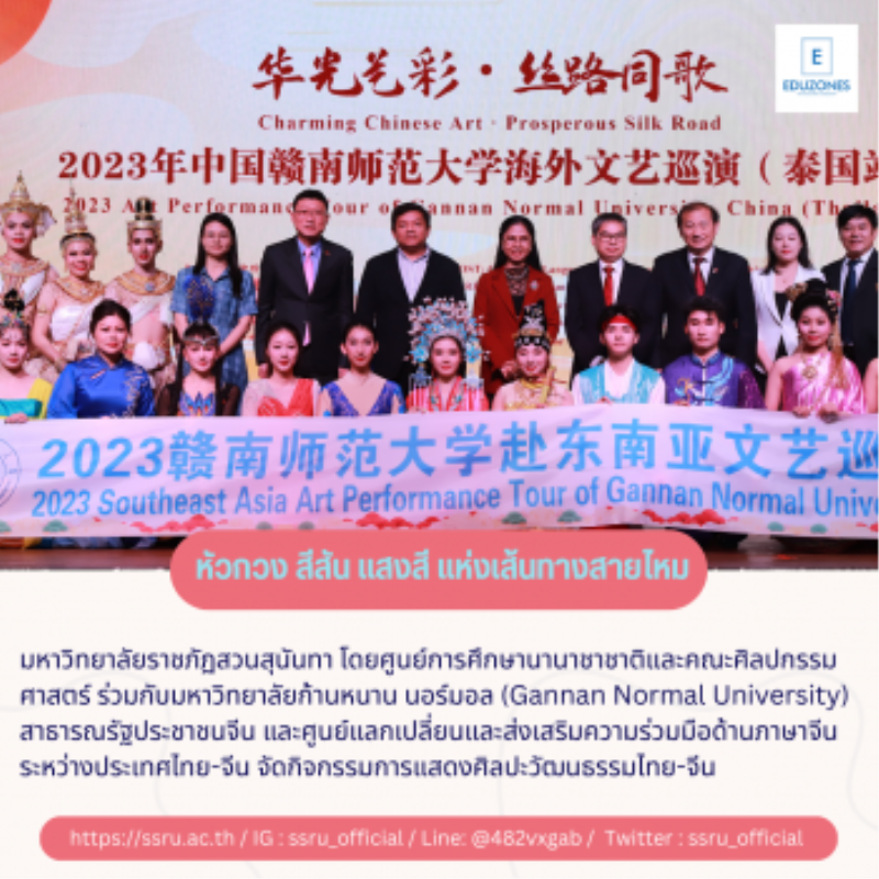 สวนสุนันทา จับมือ ม.ก้านหนาน ส่งเสริมการอนุรักษ์วัฒนธรรมและความสัมพันธ์ไทย – จีน tui sakrapee November 30, 2023 มหาวิทยาลัยราชภัฏสวนสุนันทา จับมือ มหาวิทยาลัยก้านหนาน สาธารณรัฐประชาชนจีน ส่งเสริมการอนุรักษ์วัฒนธรรมและความสัมพันธ์ระหว่างไทย – จีน มหาวิทยาลัยราชภัฏสวนสุนันทา โดยศูนย์การศึกษานานาชาชาติและคณะศิลปกรรมศาสตร์ ร่วมกับมหาวิทยาลัยก้านหนาน นอร์มอล (Gannan Normal University) สาธารณรัฐประชาชนจีน และศูนย์แลกเปลี่ยนและส่งเสริมความร่วมมือด้านภาษาจีนระหว่างประเทศไทย-จีน จัดกิจกรรมการแสดงศิลปะวัฒนธรรมไทย-จีน ภายใต้ชื่องาน “หัวกวง สีสัน แสงสี แห่งเส้นทางสายไหม” เพื่อเป็นการส่งเสริมความสามารถ ศักยภาพของอาจารย์และนักศึกษาของมหาวิทยาลัย และสืบทอด ปลูกฝังความสามารถทางด้านศิลปะ ตลอดจนยังเป็นกิจกรรมที่ช่วยกระชับมิตรและแลกเปลี่ยนความสัมพันธ์ระหว่างมหาวิทยาลัยในสาธารณรัฐประชาชนจีนและประเทศไทยอีกด้วย ซึ่งในครั้งนี้ ได้รับเกียรติจาก รองศาสตราจารย์ ดร.นันทิยา น้อยจันทร์ รองอธิการบดีฝ่ายวิชาการ คุณ ชิว เสี่ยวหยุน รองอธิการบดี มหาวิทยาลัยก้านหนาน นอร์มอล (Gannan Normal University)… Continue Reading